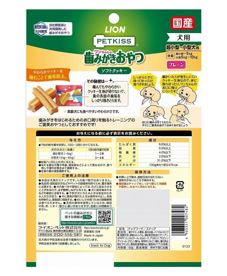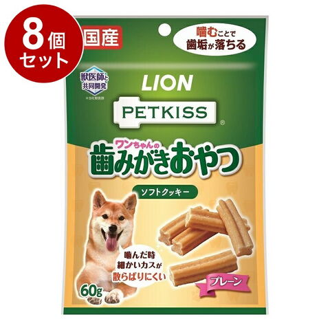 【8個セット】 ライオンペット PETKISS ワンちゃんの歯みがきおやつ ソフトクッキー プレーン 60g【ポイント10倍】 【送料無料】