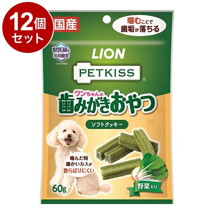 【12個セット】 ライオンペット PETKISS ワンちゃんの歯みがきおやつ ソフトクッキー 野菜入り 60g【ポイント10倍】 【送料無料】