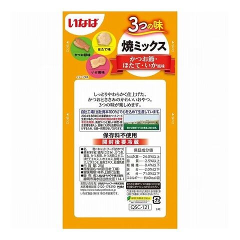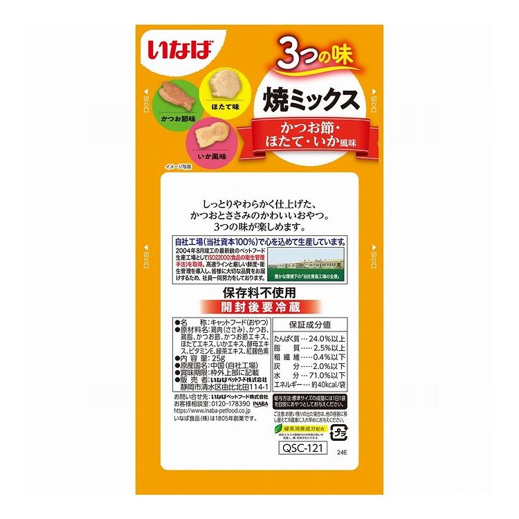 いなばペットフード 焼ミックス3つの味鰹節帆立いか風味25g