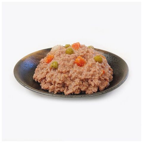 ・鶏ささみと鶏レバーに食物繊維を含む野菜(じゃがいも、人参、グリンピース)を加え、食べやすいやわらかなミンチ状に仕上げた総合栄養食です。