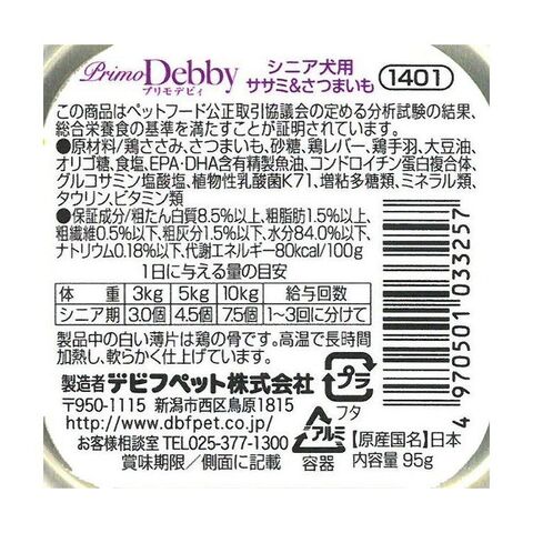 【24個セット】 デビフ プリモデビィ シニア犬ササミさつまいも 95g 犬用 フード ドッグフード【送料無料】