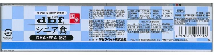 ・高齢期の健康に配慮して、DHA・EPAを配合しました。高齢犬の主食としてご使用いただけます。