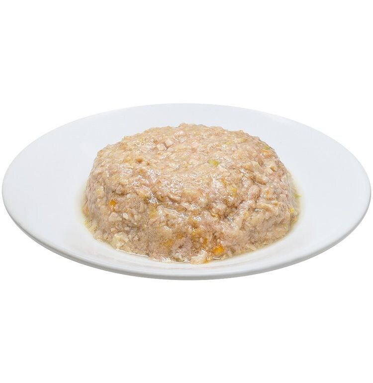 ・鶏胸肉、豚心臓、鶏レバーをベースに、すりおろした野菜(じゃがいも、人参、グリンピース)を加え、高齢犬にも食べやすいやわらかさに仕上げた総合栄養食です。
