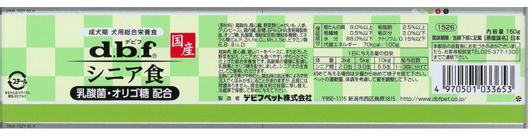 【6個セット】 デビフ シニア食乳酸菌・オリゴ糖配合 150g 犬用 フード ドッグフード