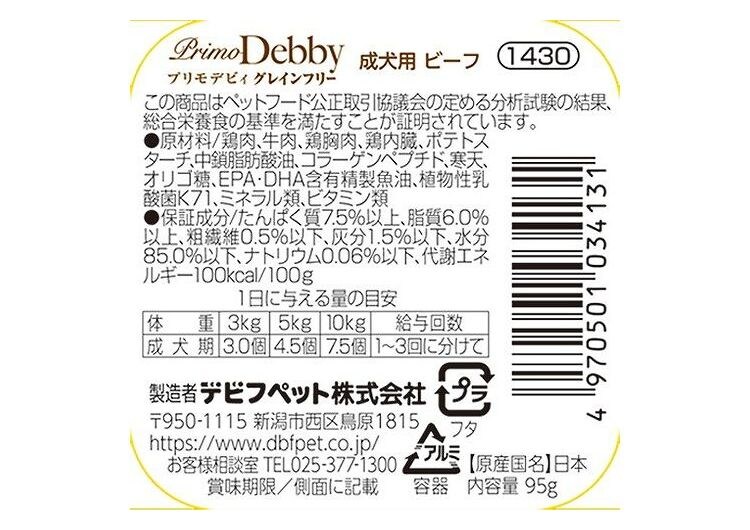 【6個セット】 デビフ プリモデビィ グレインフリー 成犬用 ビーフ 95g【ポイント10倍】