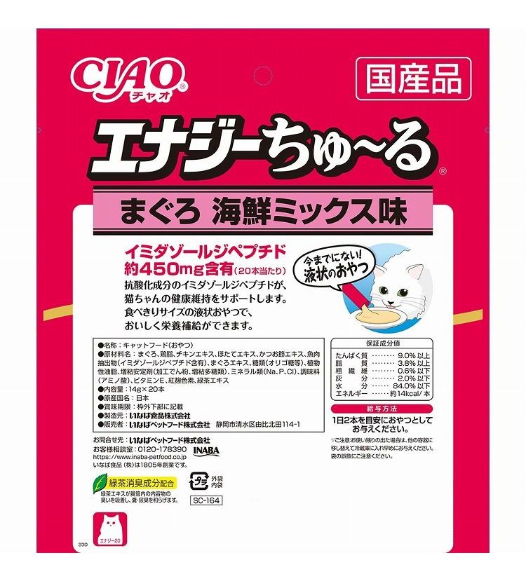 いなばペットフード CIAO エナジーちゅ~る まぐろ 海鮮ミックス味 14g×20本【ポイント10倍】