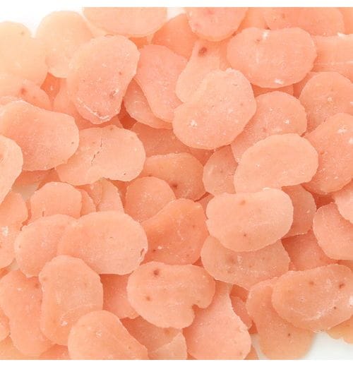 肉類(鶏肉、鶏ささみ)、牛肉、ソルビトール、グリセリン、小麦粉、コーンスターチ、リン酸塩(Na)、植物性油脂、魚油、グルコサミン、コンドロイチン、コエンザイム Q10、ビタミン類(A、D、E、B1、B2、ナイアシン、B6、葉酸、B12、パントテン酸、 C)、着色料(赤106号、カラメル色素)