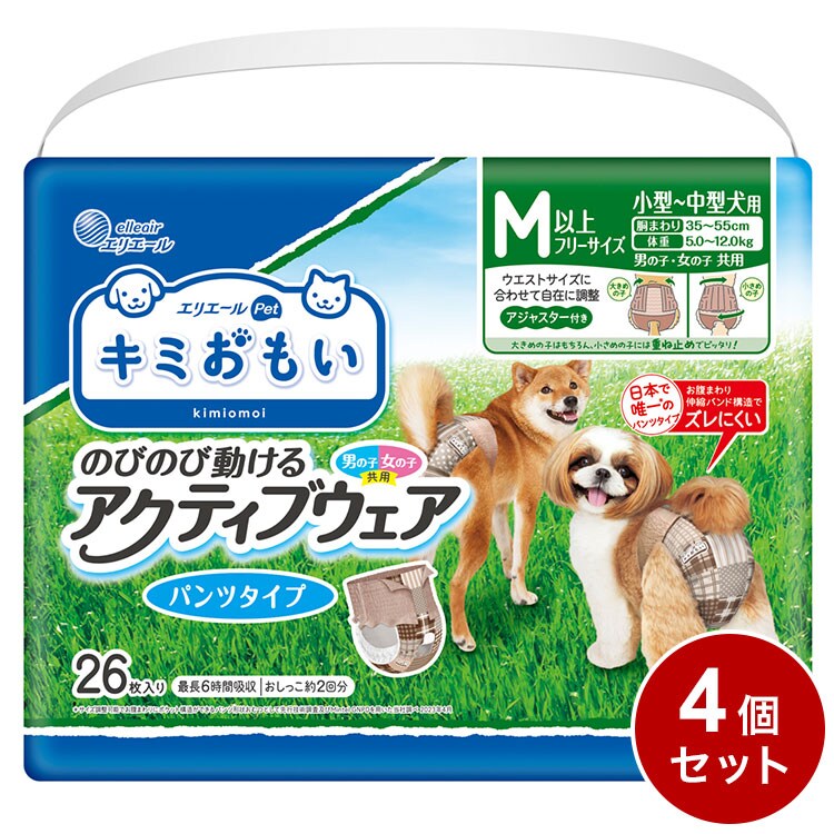 【4個セット】 エリエールペット キミおもい アクティブウェア M-L 26枚 おむつ オムツ ペットおむつ 犬用 犬用おむつ トイレ フリーサイズ 男女共用 兼用【ポイント10倍】 【送料無料】