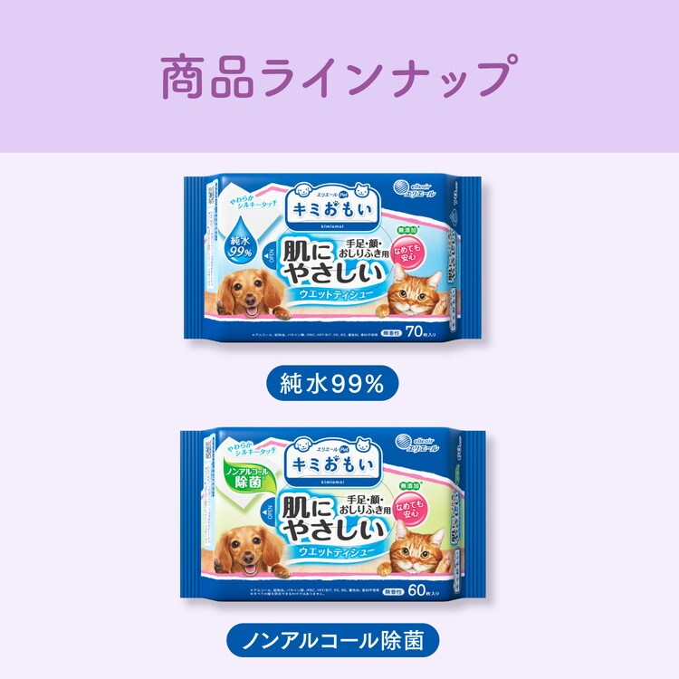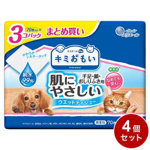 【4個セット】 エリエールペット キミおもい ウエットティシュ― 純水 70×3 ペット用 ウェットティッシュ 犬用 猫用 純水99% 除菌【ポイント10倍】 【送料無料】