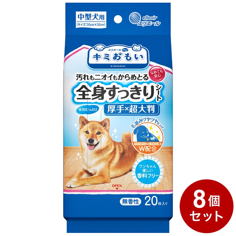 【8個セット】 エリエールペット キミおもい 全身すっきりシート 中型犬用 20枚 ペット用 ボディタオル ボディシート ウェットティッシュ 犬用【ポイント10倍】 【送料無料】