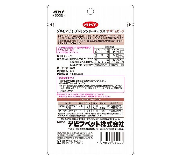 デビフ プリモデビィ グレインフリーチップス ササミ&ビーフ 30g【ポイント10倍】