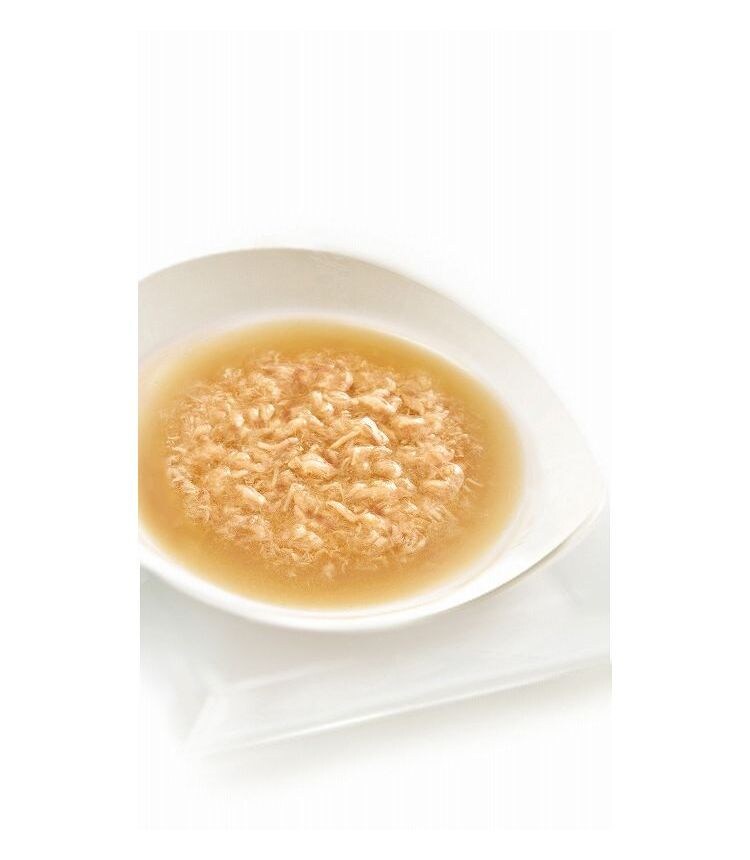 良質なたんぱく質や魚のピュアオイル配合。まぐろの白身だけを贅沢に使用した食べやすい細かめフレークのスープメニュー。特製レシピのスープが食材と絡む味わいは、食べながら水分補給にぴったり。夏の暑い時期や、冬の乾燥する室内にいるネコちゃんにもおすすめです。いつもの食事のトッピングにはもちろん、おやつやご褒美にもぴったり。