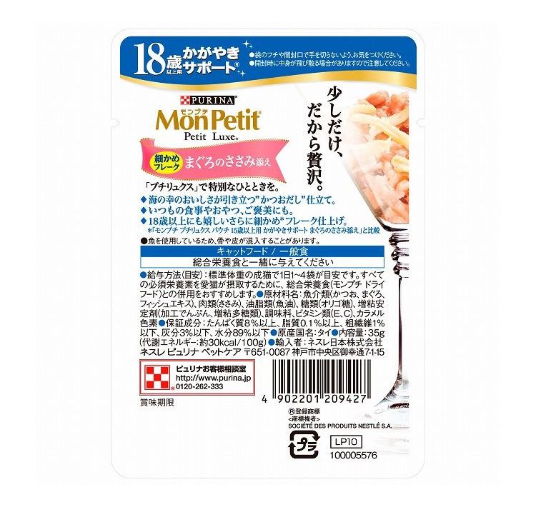 【24個セット】 ネスレ モンプチ プチリュクスパウチ 18歳以上用 かがやきサポート まぐろのささみ添え かつおだし仕立て 35g【ポイント10倍】 【送料無料】