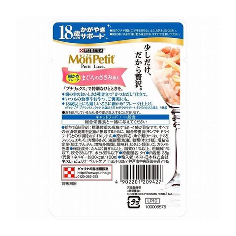 【48個セット】 ネスレ モンプチ プチリュクスパウチ 18歳以上用 かがやきサポート まぐろのささみ添え かつおだし仕立て 35g【ポイント10倍】 【送料無料】