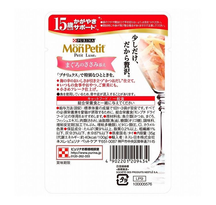 【24個セット】 ネスレ モンプチ プチリュクスパウチ 15歳以上用 かがやきサポート まぐろのささみ添え かつおだし仕立て 35g【ポイント10倍】 【送料無料】