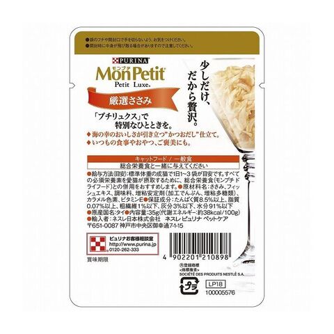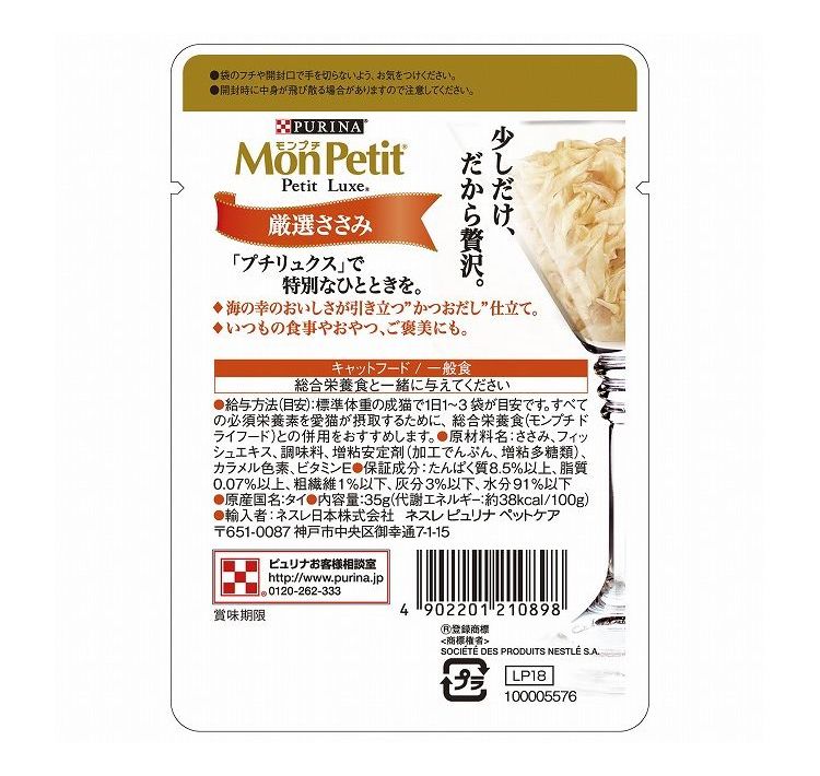 【24個セット】 ネスレ モンプチ プチリュクスパウチ 厳選ささみ かつおだし仕立て 35g【ポイント10倍】 【送料無料】