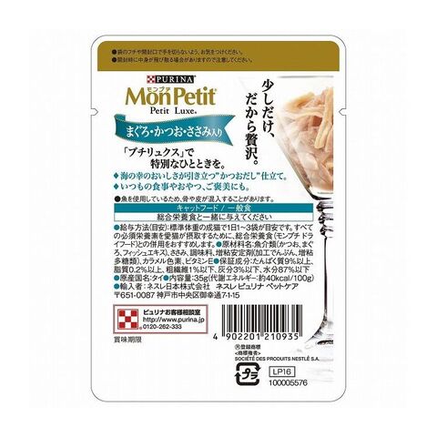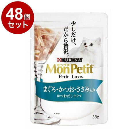 【48個セット】 ネスレ モンプチ プチリュクスパウチ まぐろ・かつお・ささみ入り かつおだし仕立て 35g【ポイント10倍】 【送料無料】