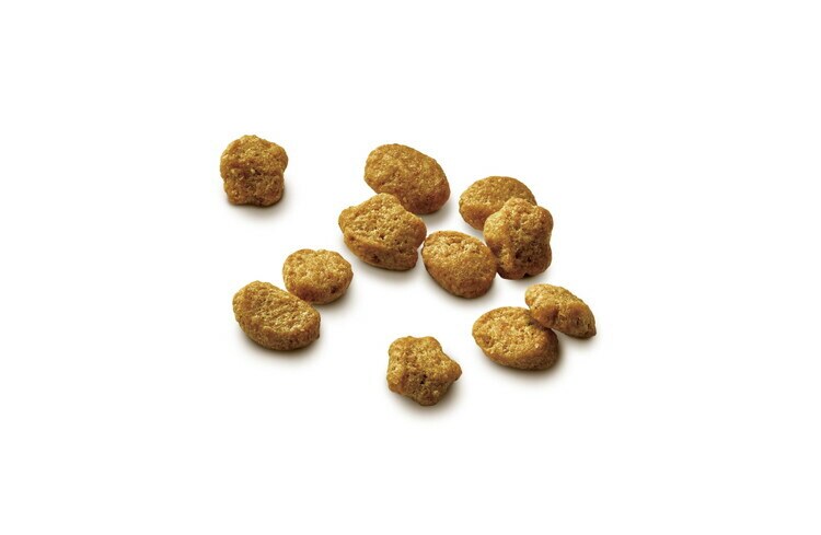 たんぱく質34%以上、脂質9%以上、粗繊維5.1%以下、灰分8.5%以下、水分12%以下