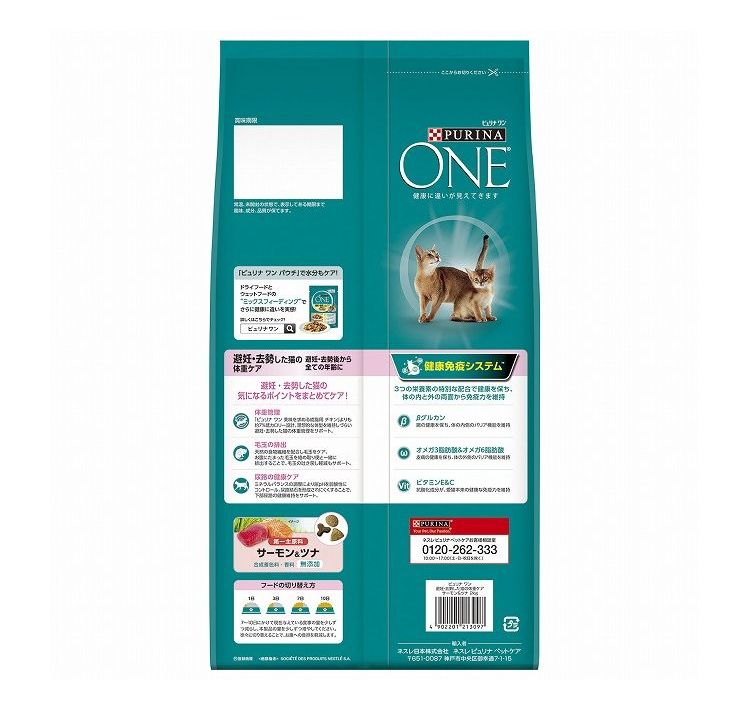 【4個セット】 ネスレ ピュリナワンキャット 避妊・去勢した猫の体重ケア 避妊・去勢後から全ての年齢に サーモン&ツナ 2kg【ポイント10倍】 【送料無料】