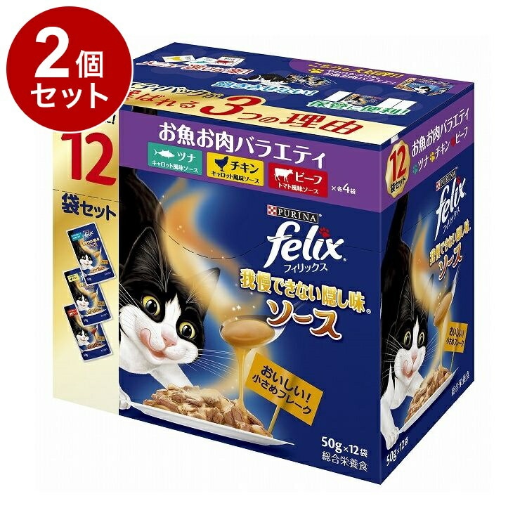 【2個セット】 ネスレ フィリックスパウチ 我慢できない隠し味ソース お魚お肉バラエティ 50g×12袋【ポイント10倍】