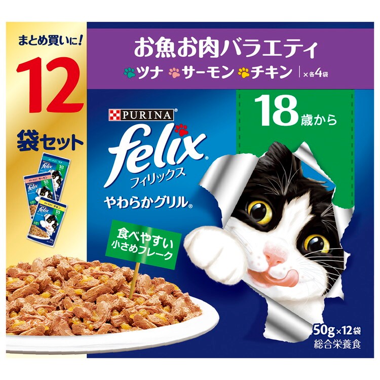 【4個セット】 ネスレ フィリックスパウチ やわらかグリル 18歳から お魚お肉バラエティ 50g×12袋【ポイント10倍】 【送料無料】