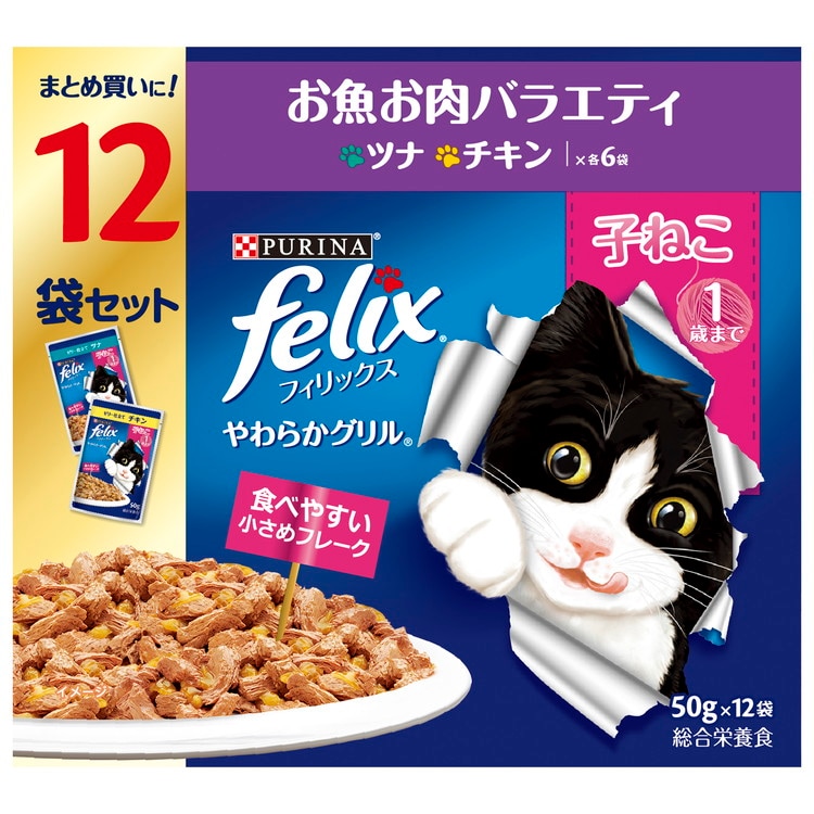 【4個セット】 ネスレ フィリックスパウチ やわらかグリル 子ねこ お魚お肉バラエティ 50g×12袋【ポイント10倍】 【送料無料】
