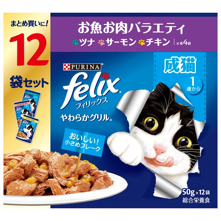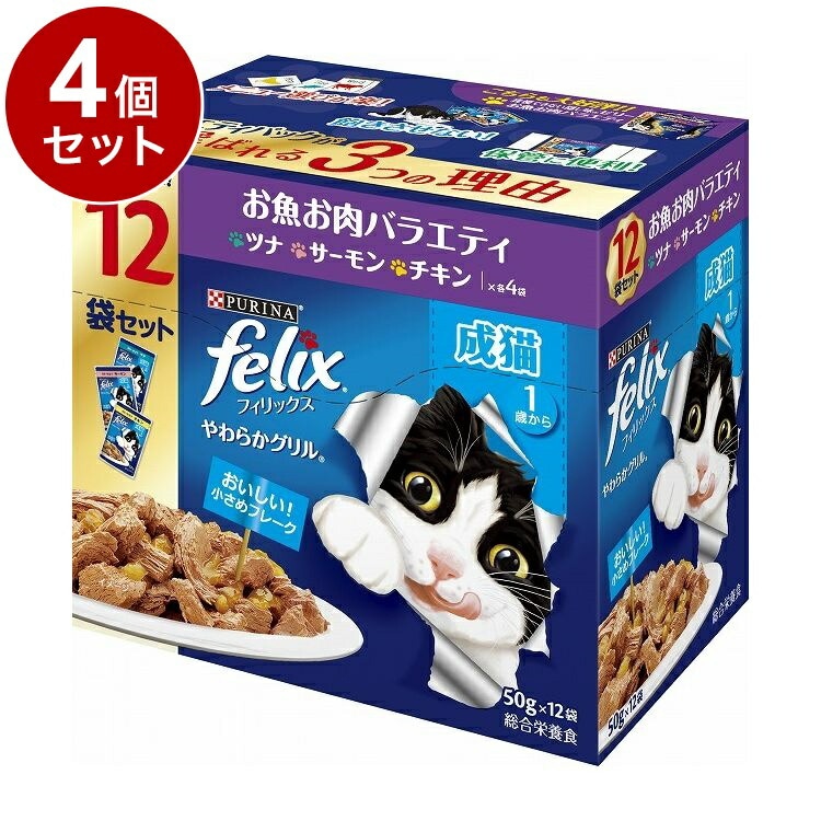 【4個セット】 ネスレ フィリックスパウチ やわらかグリル 成猫 お魚お肉バラエティ 50g×12袋【ポイント10倍】 【送料無料】