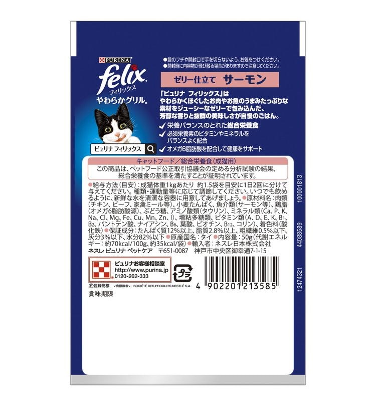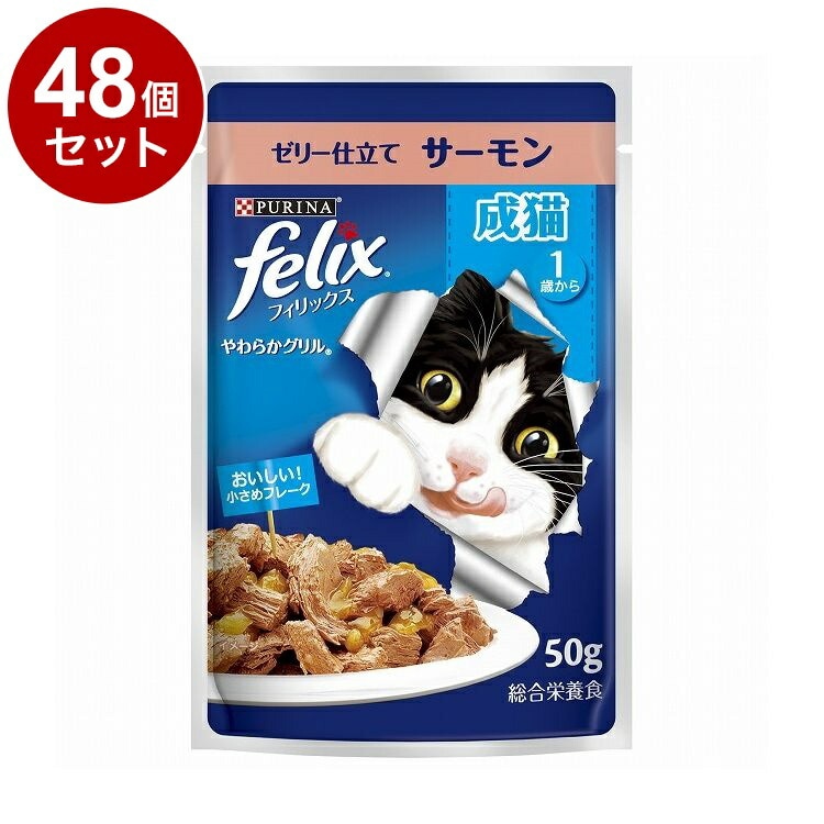【48個セット】 ネスレ フィリックスパウチ やわらかグリル 成猫 ゼリー仕立て サーモン 50g【ポイント10倍】 【送料無料】
