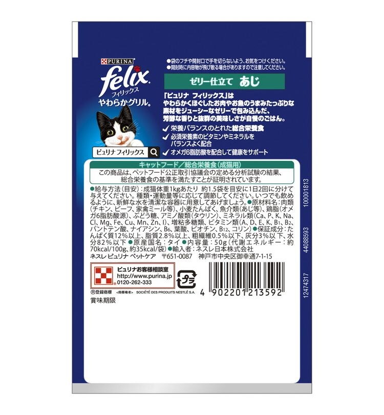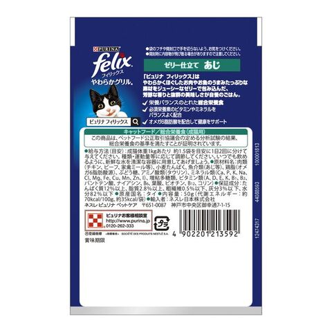 【24個セット】 ネスレ フィリックスパウチ やわらかグリル 成猫 ゼリー仕立て あじ 50g【ポイント10倍】