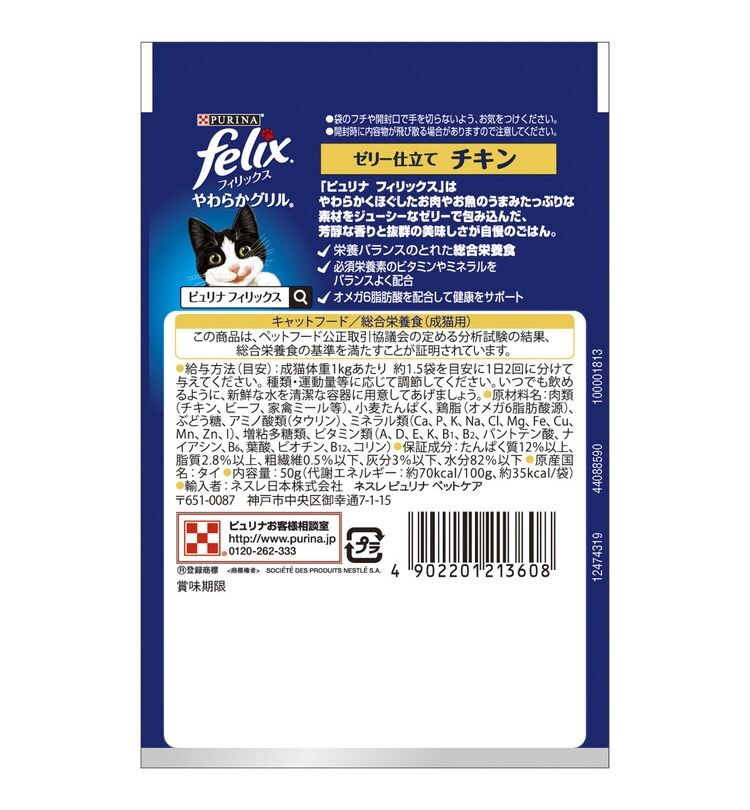【48個セット】 ネスレ フィリックスパウチ やわらかグリル 成猫 ゼリー仕立て チキン 50g【ポイント10倍】 【送料無料】