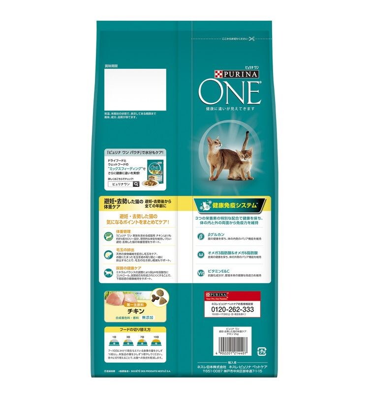 「ピュリナ ワン」は、愛猫の健康に役立つ栄養が詰まったオール・イン・ワン・フード。生涯を通じて健康寿命をサポートします。