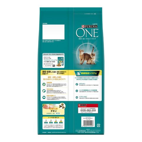 「ピュリナ ワン 美味を求める成猫用 チキン」よりも約8%低カロリー設計。理想的な体重を維持しづらい避妊・去勢した猫の体重管理をサポート。