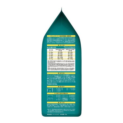たんぱく質37%以上、脂質9%以上、粗繊維6%以下、灰分8.5%以下、水分12%以下
