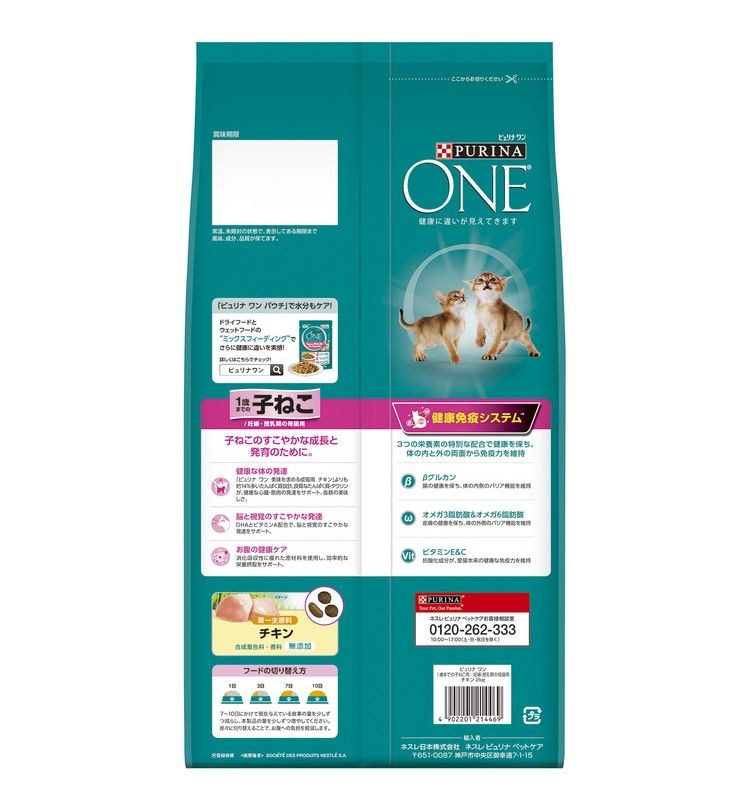 【4個セット】 ネスレ ピュリナワンキャット 1歳までの子ねこ用/妊娠・授乳期の母猫用 チキン 2kg【ポイント10倍】 【送料無料】