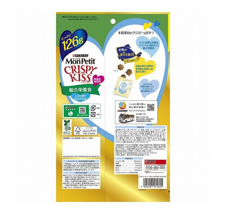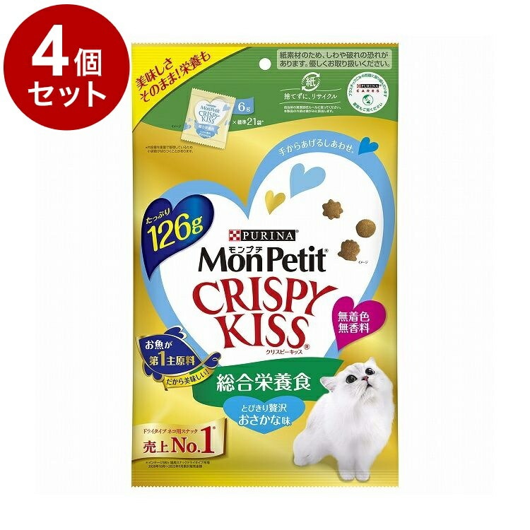 【4個セット】 ネスレ モンプチ クリスピーキッス 総合栄養食 とびきり贅沢おさかな味 126g【ポイント10倍】 【送料無料】