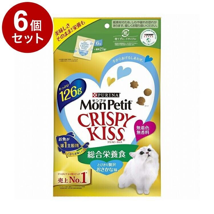 【6個セット】 ネスレ モンプチ クリスピーキッス 総合栄養食 とびきり贅沢おさかな味 126g【ポイント10倍】 【送料無料】
