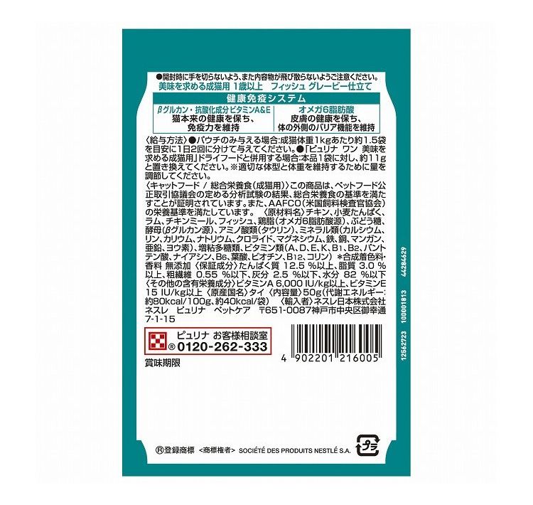【24個セット】 ネスレ ピュリナワンキャット パウチ 美味を求める成猫用 1歳以上 フィッシュグレービー仕立て 50g【ポイント10倍】 【送料無料】