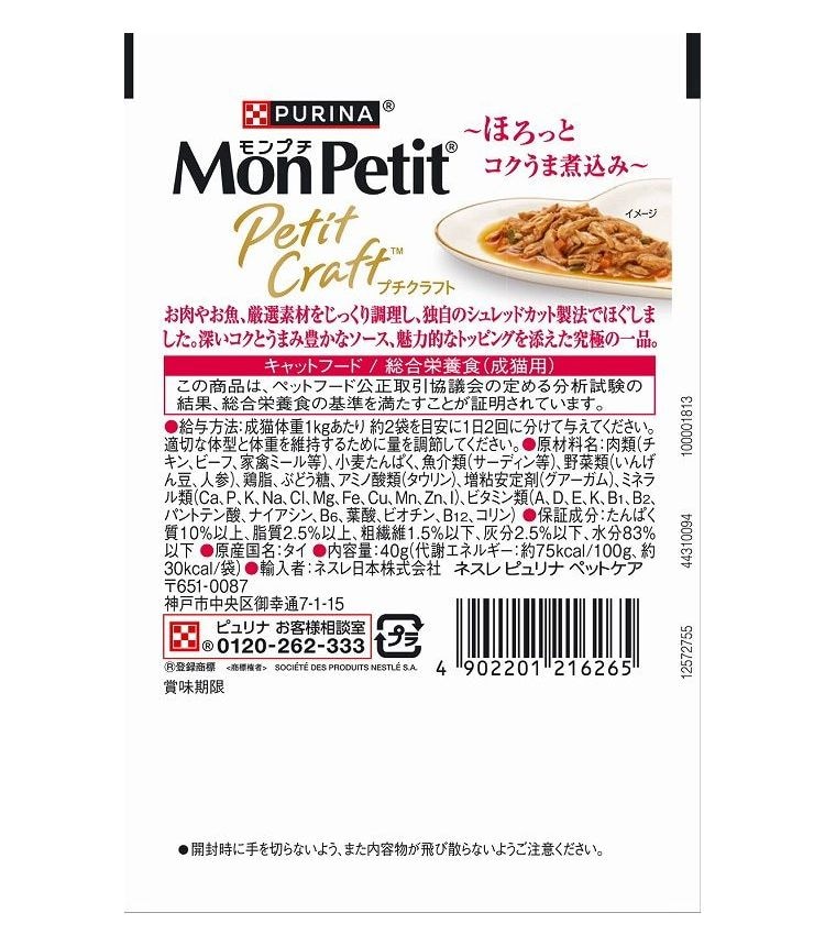 【24個セット】 ネスレ モンプチ プチクラフト ビーフ 野菜入りソース仕立て 40g【ポイント10倍】 【送料無料】