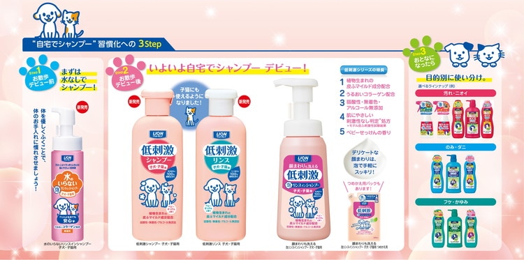 ・デリケートな肌にやさしい子犬、子猫から使える低刺激シャンプーです。