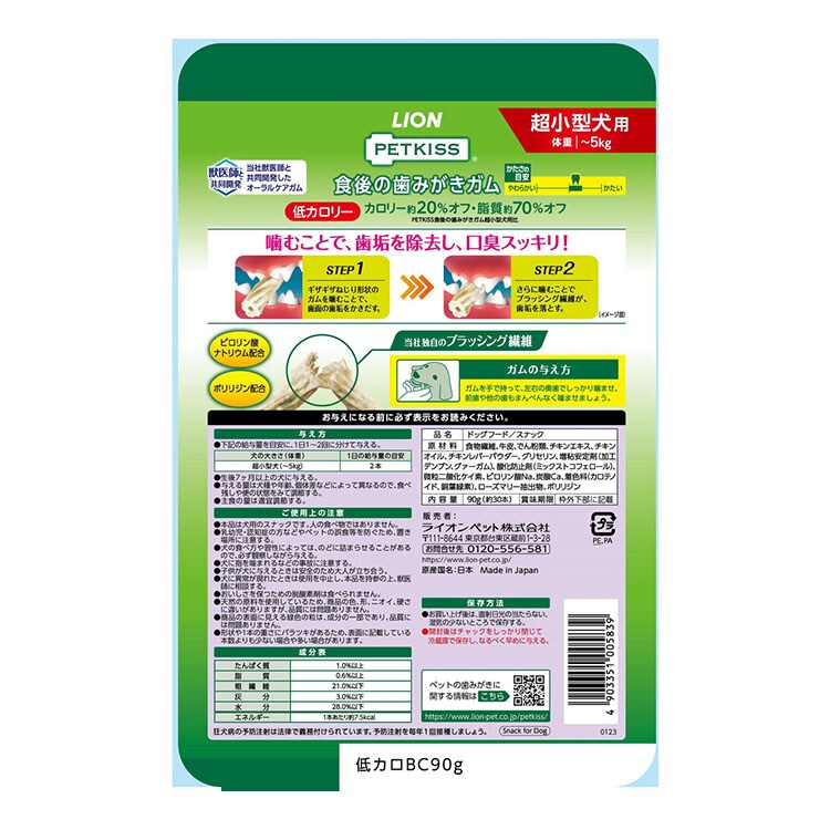 ライオンペット PETKISS 食後の歯みがきガム 低カロリー 超小型犬用 90g【ポイント10倍】