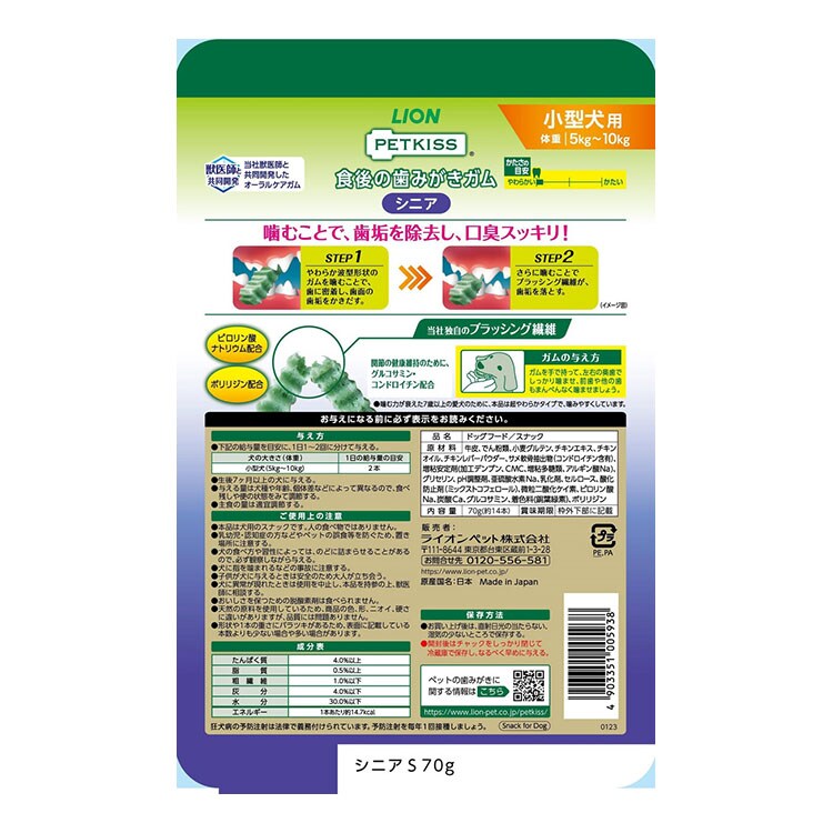 ライオンペット PETKISS 食後の歯みがきガム シニア 小型犬用 70g【ポイント10倍】