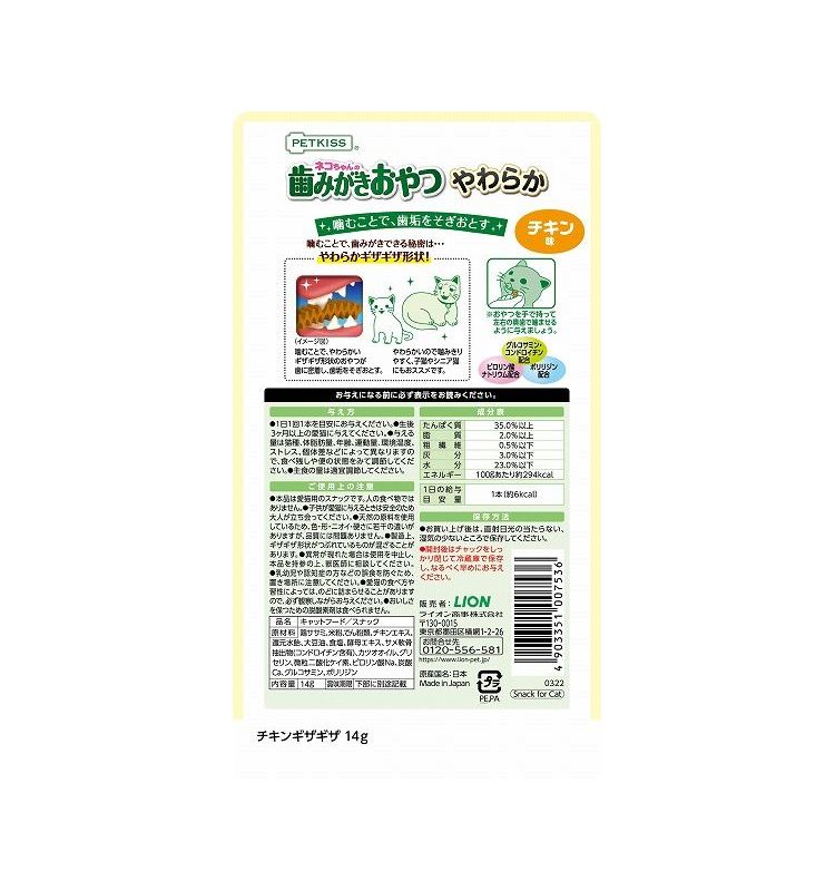 ライオン商事 PETKISS PETKISS ネコちゃんの歯みがきおやつ やわらか チキン味 14g