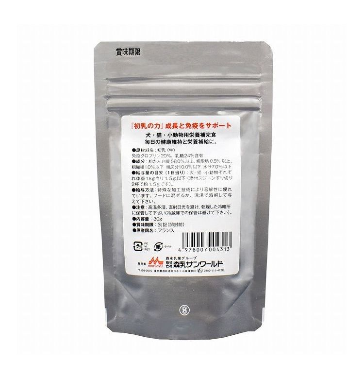 良質な初乳(牛)由来100%の粉末で、特殊な加工技術により溶解性に優れています。健康な免疫機能をサポートする抗体、免疫グロブリンを20%含有しています。生体防御に重要な役割を持つたんぱく質の一種、ラクトフェリンを含有しています。ビフィズス菌の増殖を促進するラクチュロース(ミルクオリゴ糖)を含有しています。良質なミルクたんぱく質(カゼイン+ホエー)と種々のミネラルを含有しています。体の健康維持をサポートするミルクセラミド、ラクトアルブミンを含有しています。吸収性に優れたミルクカルシウムを含有しています。