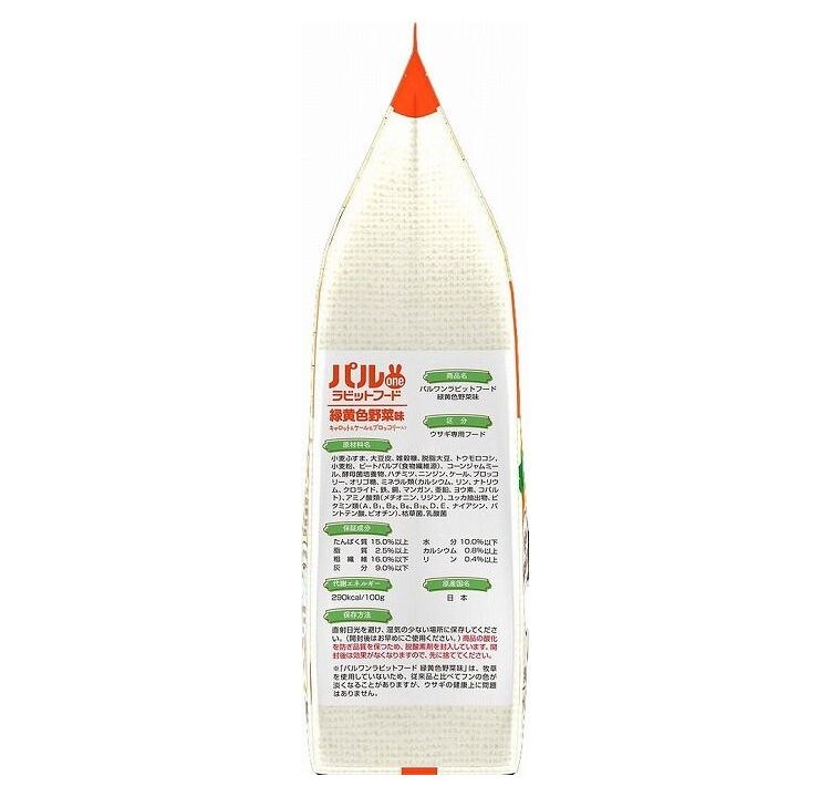 「パルワンラビットフード 緑黄色野菜味」は、グルメ志向なウサギのことを考えて作ったこだわりのフードです。3種類の緑黄色野菜に、はちみつを加えることで、ウサギの大好きな味に仕上げました。栄養のおいしさでうさぎの健康的な生活を応援します。