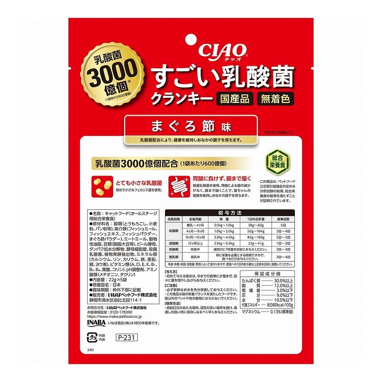 いなばペットフード CIAO すごい乳酸菌クランキー まぐろ節味 22gx5袋 猫 猫用 キャットフード おやつ フード ペット ペットフード