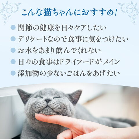厳選した原材料とこだわりの製法で高い嗜好性を持つ成猫用総合栄養食。グルコサミン、コンドロイチン、L-カルニチン配合で関節の健康維持をサポート。動物性たんぱく質は天然まぐろのみを使用、グルテンフリーでグルテン等にアレルギーのある子に配慮しています。自然の栄養価を保つためスチーム製法を採用。食品の鮮度を維持するために、全ての原材料は調理開始から2時間以内に製品化されます。着色料、保存料不使用。