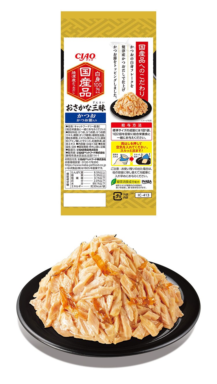 いなばペットフード CIAO おさかな三昧 かつお かつお節入り 60g×3袋【ポイント10倍】