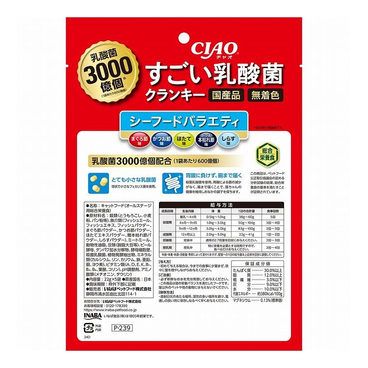 いなばペットフード CIAOすごい乳酸菌クランキー シーフードバラエティ 22gx5袋 猫 猫用 キャットフード おやつ フード ペット ペットフード