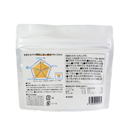 弘安倉庫 北海道産やぎミルクパウダー(犬猫小動物用) 70g【ポイント10倍】 【送料無料】