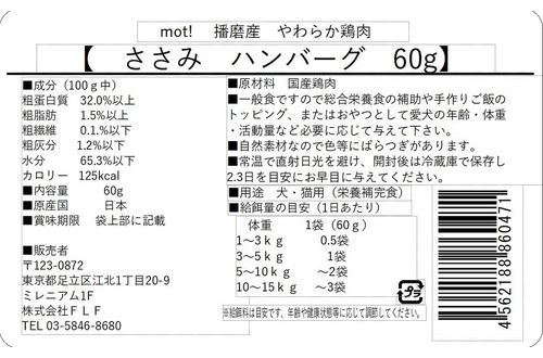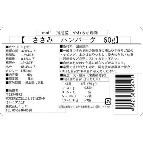 FLF mot! やわらか鶏肉 ささみハンバーグ 60g【ポイント10倍】